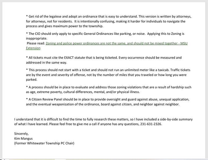 The Whitewater Township Board of Trustees is currently considering changing our current form of ordinance enforcement.
